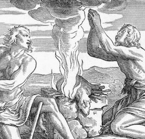 Bringt gerettete Tiere um! Unmittelbar nach der Sintflut soll Noah angeblich viele der geretteten Tiere verbrannt haben. "Und der HERR roch den lieblichen Geruch" der brennenden Kadaver und soll Noah gesegnet haben.